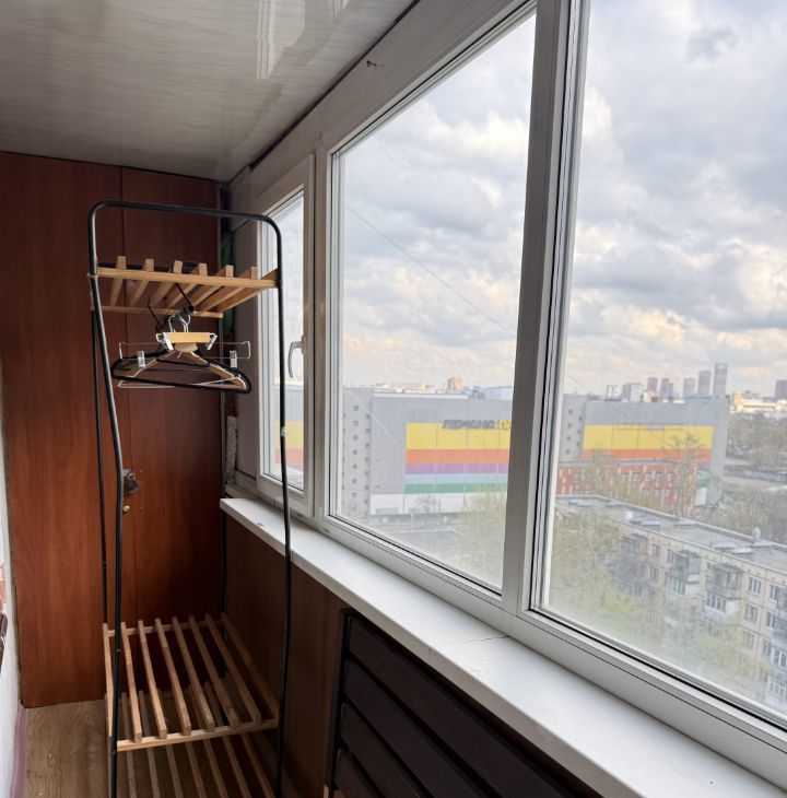 Большая утепленная лоджия (6 метров), объединенная с кухней и комнатой.