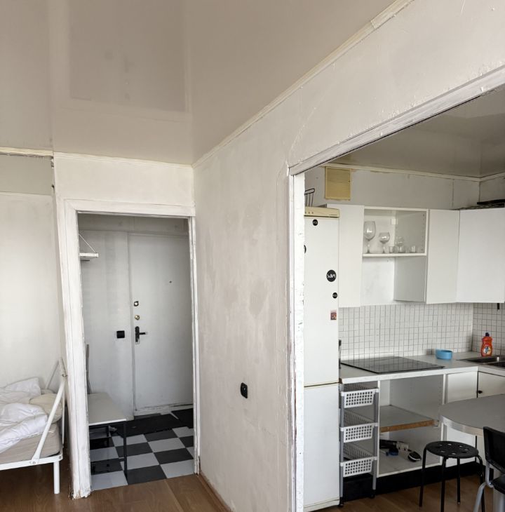 Сдается собственником однокомнатная квартира, кухня соединена проемом с комнатой.