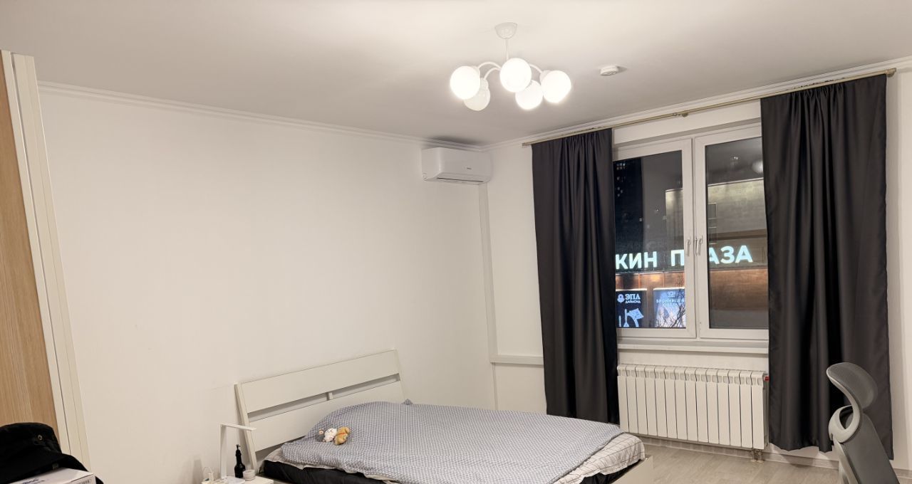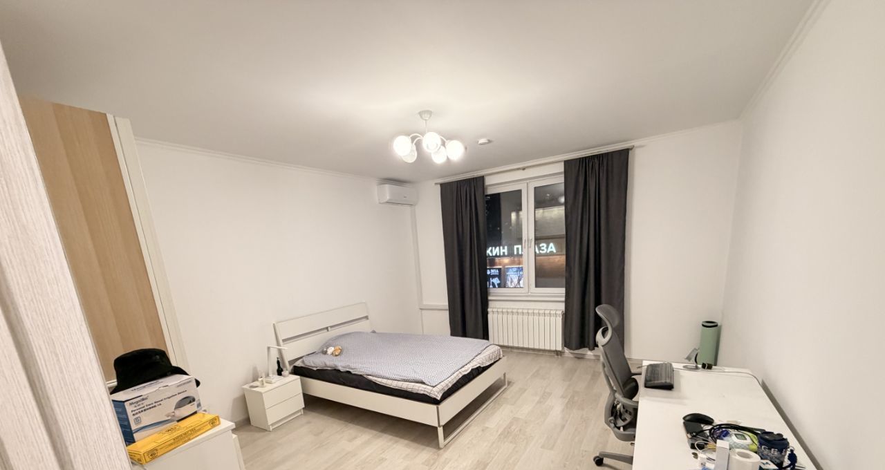 Про КВАРТИРУ: Общая площадь = 46м2, спальная комната: 22м2, + кухня 11м2, с/у совмещенный, из кухни окна на балкон - Райкин Плаза. Состояние дизайнерский проект от Alexy. Вместительный шкаф - ЗАЕЗЖАЙ и ЖИВИ!.солнечная квартира с красивым видом из окна, сантехника grohe, кондиционер в комнате, стиральная машина, вытяжка, на кухне и в коридоре плитка в спальне комнате - на заказ кровать + Шкаф. На лестничной площадке тихие соседи.
