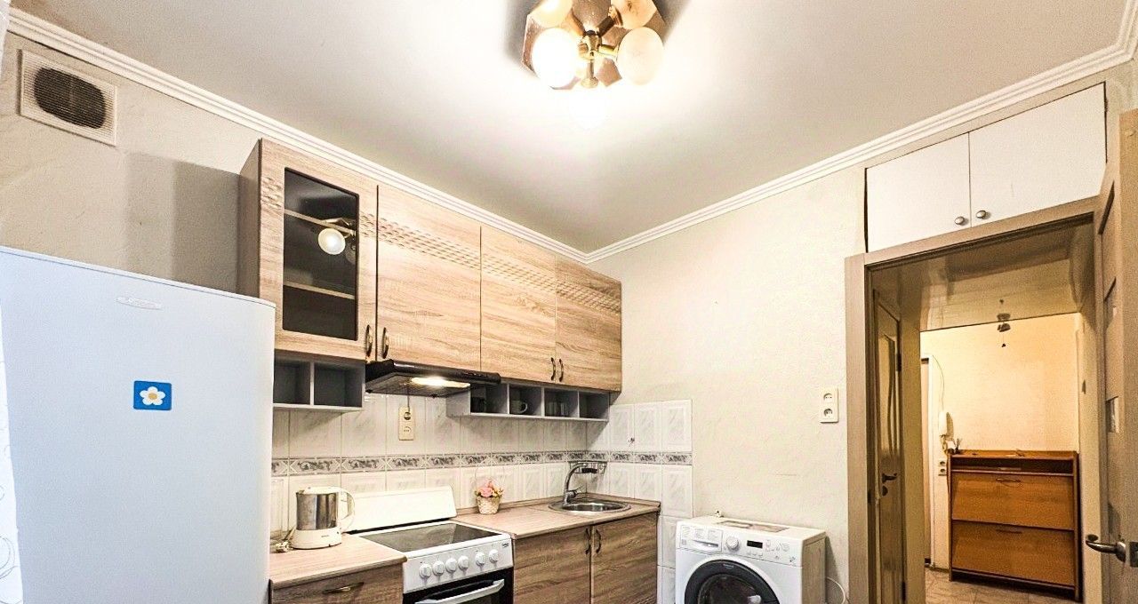 Квартира оборудована кухонным гарнитуром, мебелью и бытовой техникой: