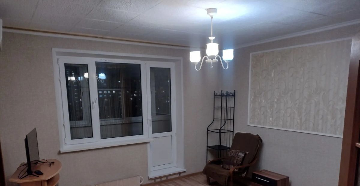 Сдаётся уютная, солнечная однокомнатная квартира, расположенная на 12 этаже, что гарантирует приятный вид из окон, выходящих во двор. Из комнаты есть выход на большую лоджию, где удобно хранить громоздкие вещи и сушить белье. Общая площадь квартиры составляет 38.8 кв. м, с просторной кухней площадью 9 кв. м. Дом оборудован двумя пассажирскими лифтами.