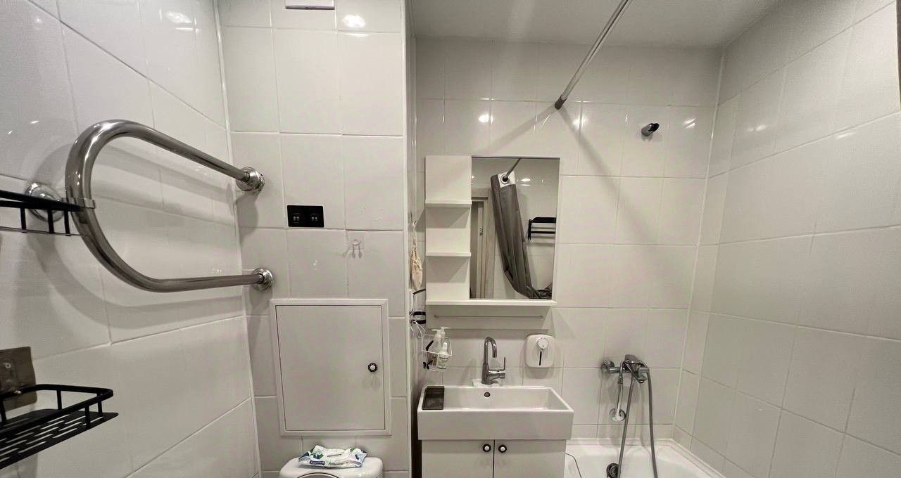 Санузел: Современный, совмещенный, выполнен в плитке.