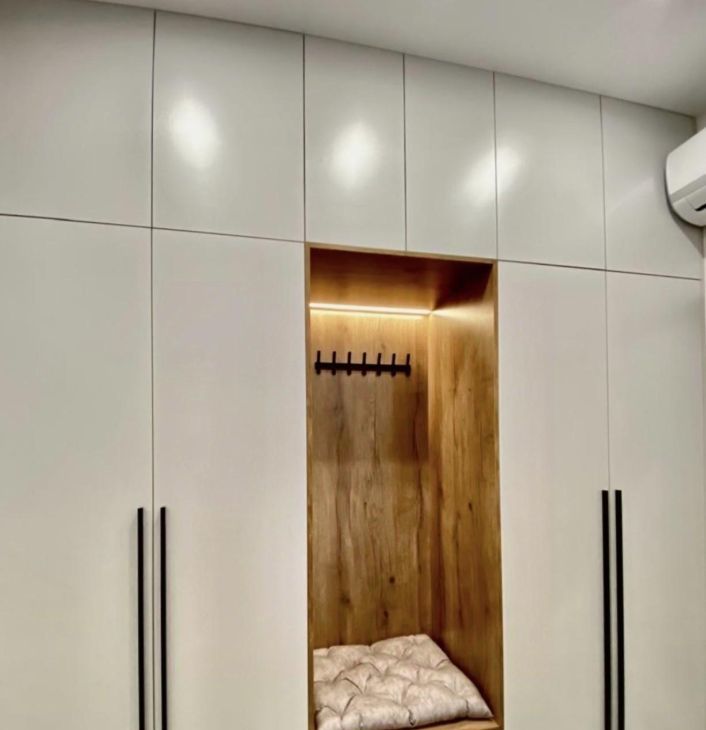 В квартире большое количество мест хранения, на входной двери зеркало во весь рост, что немаловажно и очень удобно.