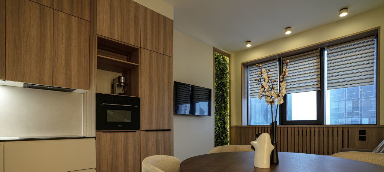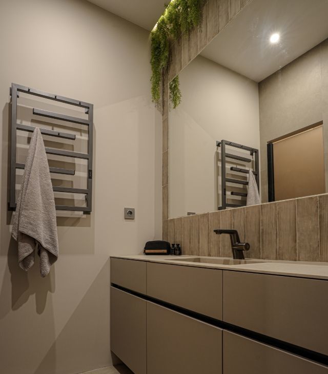 В квартире выполнен дорогой дизайнерский ремонт из качественных материалов, все помещения укомплектованы мебелью и бытовой техникой: холодильник, посудомоечная машина, вытяжка, варочная панель, духовой шкаф с функцией СВЧ, стиральная машина с функцией сушки, кофемашина, чайник, телевизор и пр. Имеется кондиционер. В квартире проведен высокоскоростной интернет и установлен видео домофон с доступом ко всем камерам дома и ЖК. Имеется бойлер, предусмотрены выводы для подключения фильтров очистки воды. Высота потолков 3,1 м.
