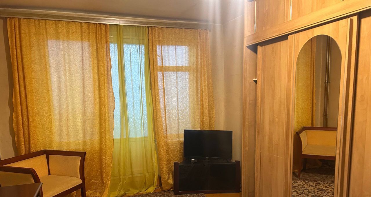 Комната 18 кв.м., с выходом на застекленный балкон, есть большой шкаф и двухспальный раскладной диван.
