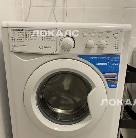 Стиральная машина Indеsit на 6 кг класса А++ установлена в ванной. Пылесос LG и комплект для уборки полов.