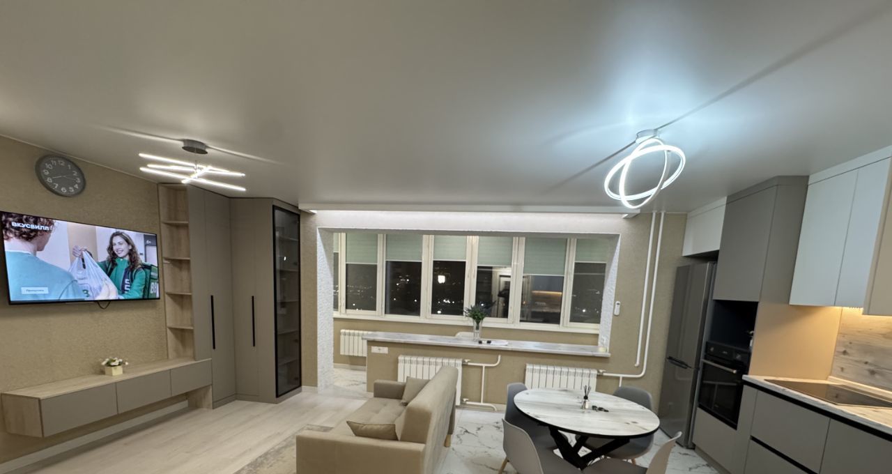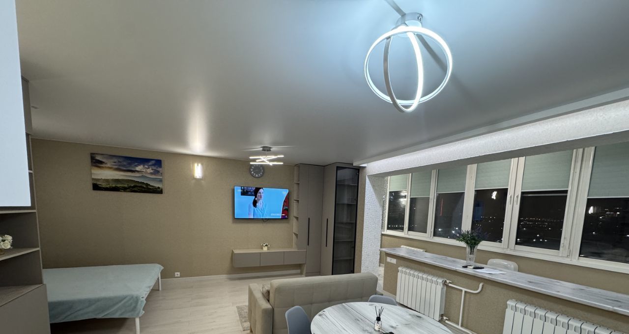 Комната совмещена с кухней и балконом утепленным.