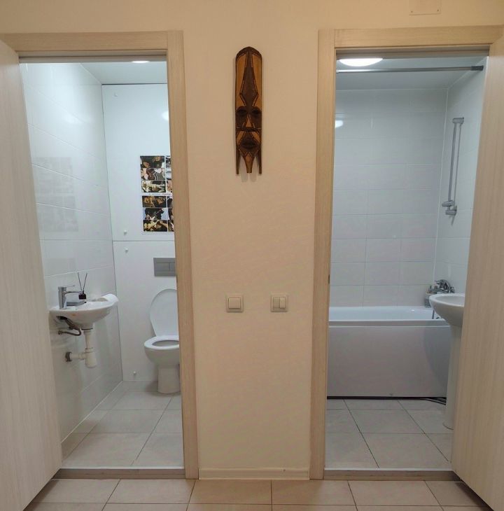 В квартире множество зеркал,полноценная ванна со стиральной машиной, раздельный санузел.
