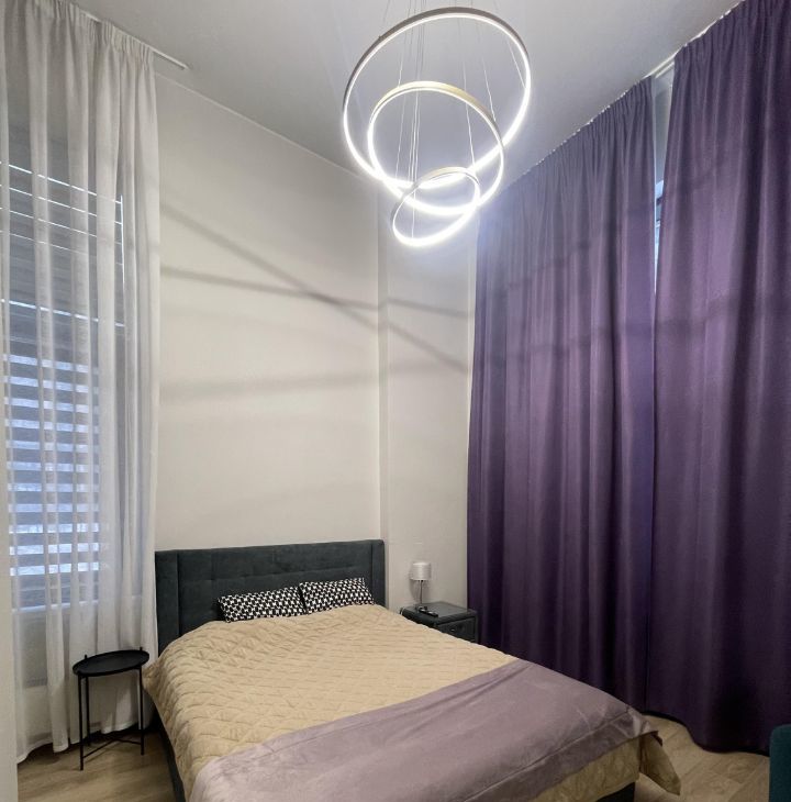 Квартира выполнена в стиле "евроремонт", что создаёт современную и комфортную атмосферу. В комнате и на кухне есть вся необходимая мебель, которая позволит вам сразу же почувствовать себя как дома. в том числе кровать с ортопедическим матрасом. Из техники вас ждут холодильник, телевизор и стиральная машина. Санузел раздельный, в ванной комнате установлена ванна, что особенно приятно после рабочего дня.