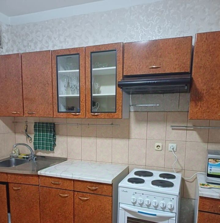 Прекрасная квартира в пешей доступности от метро. Окна квартиры выходят во двор.В квартире есть вся необходимая мебель и бытовая техника. Большая застеклённая лоджия.Квартира чистая и светлая .Спокойные соседи.