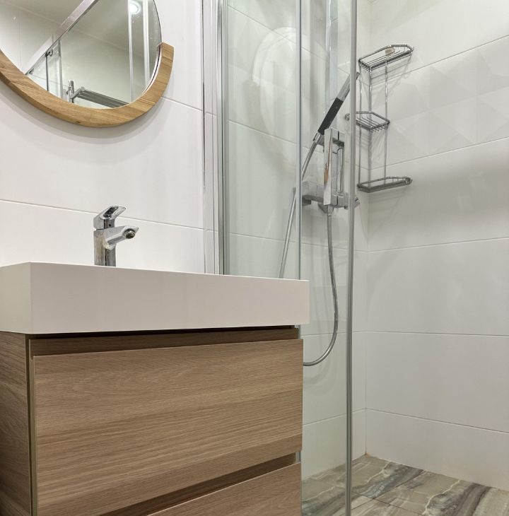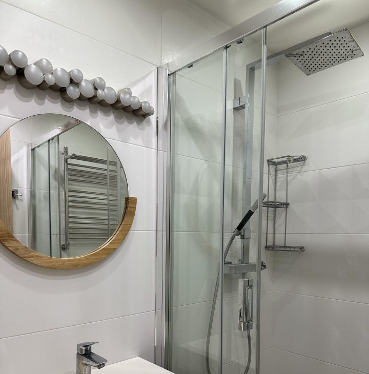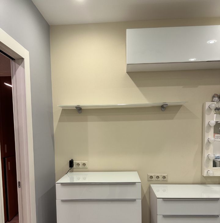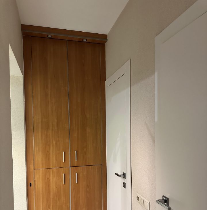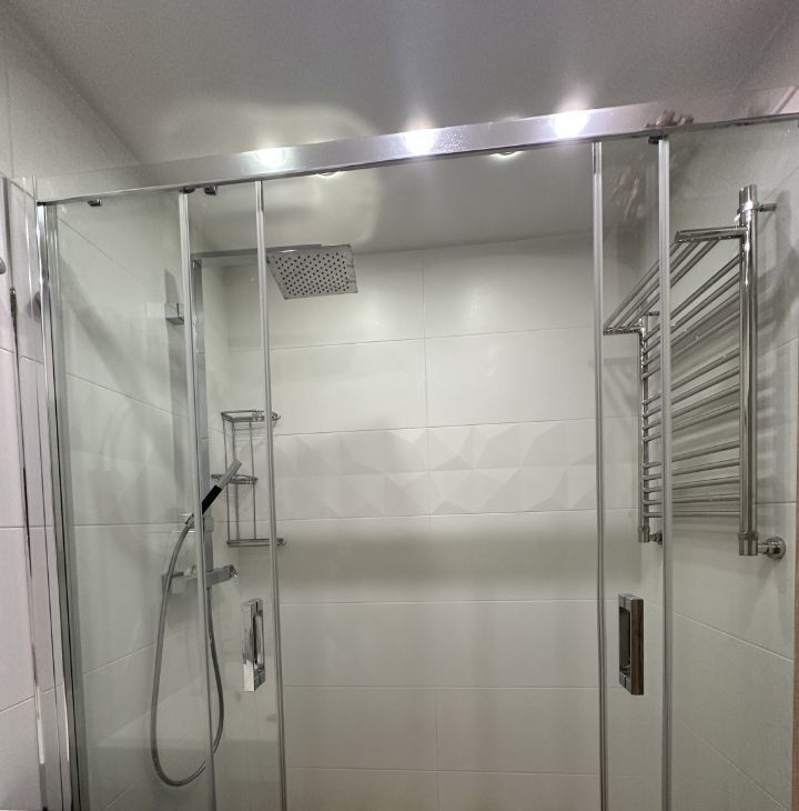 Санузел раздельный, оформлен в светлых тонах и оснащен душевой кабиной. Лоджия застеклена, что позволяет использовать ее как дополнительное пространство. В квартире имеется гардеробная, обеспечивающая достаточно места для одежды и аксессуаров.