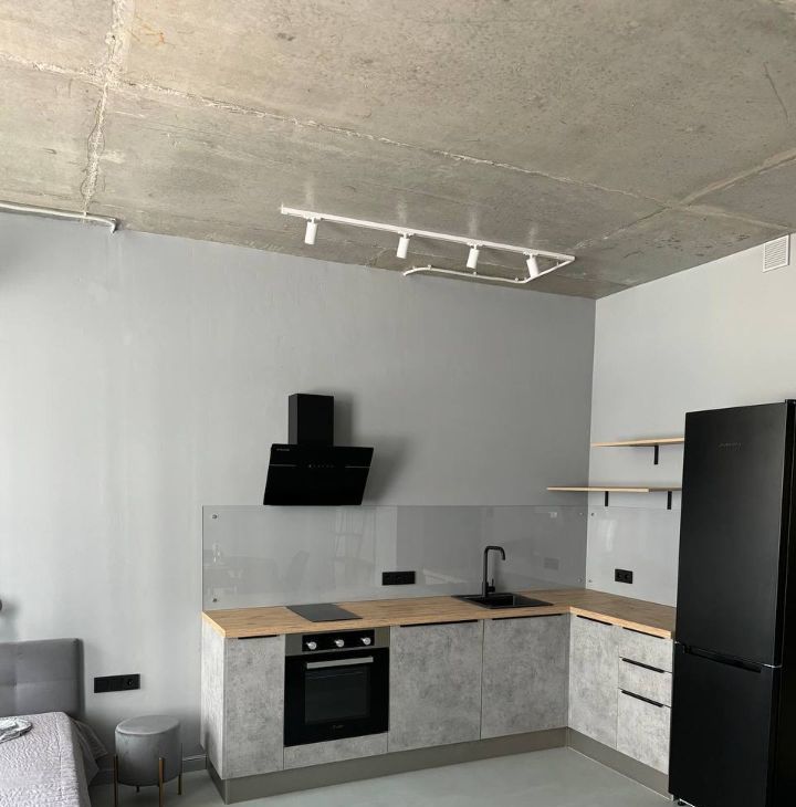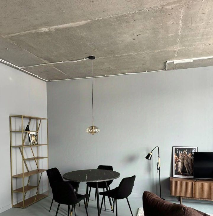 Ремонт в стиле лофт - как будто необработанные стены, потолок и пол.