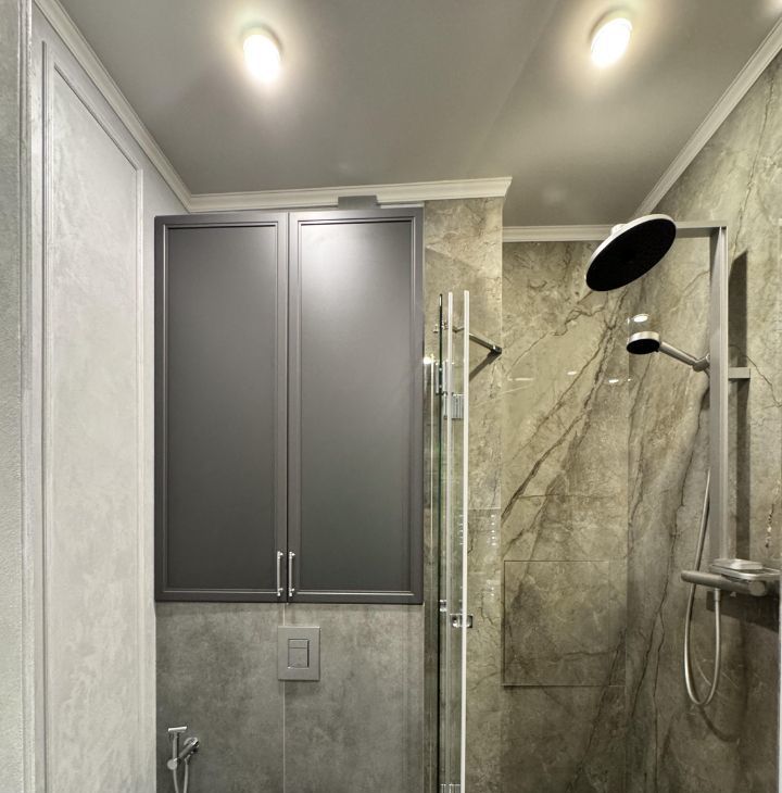 Шумоизоляция стен, пол- гидроизоляция и шумоизоляция, потолок - полностью вытянут штукатуркой в идеал, никаких гипсов и натяжной клеёнки. Максимально сохранена высота потолка бизнес-класса.