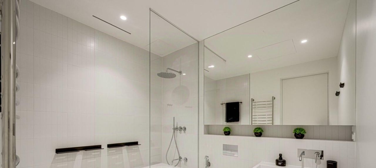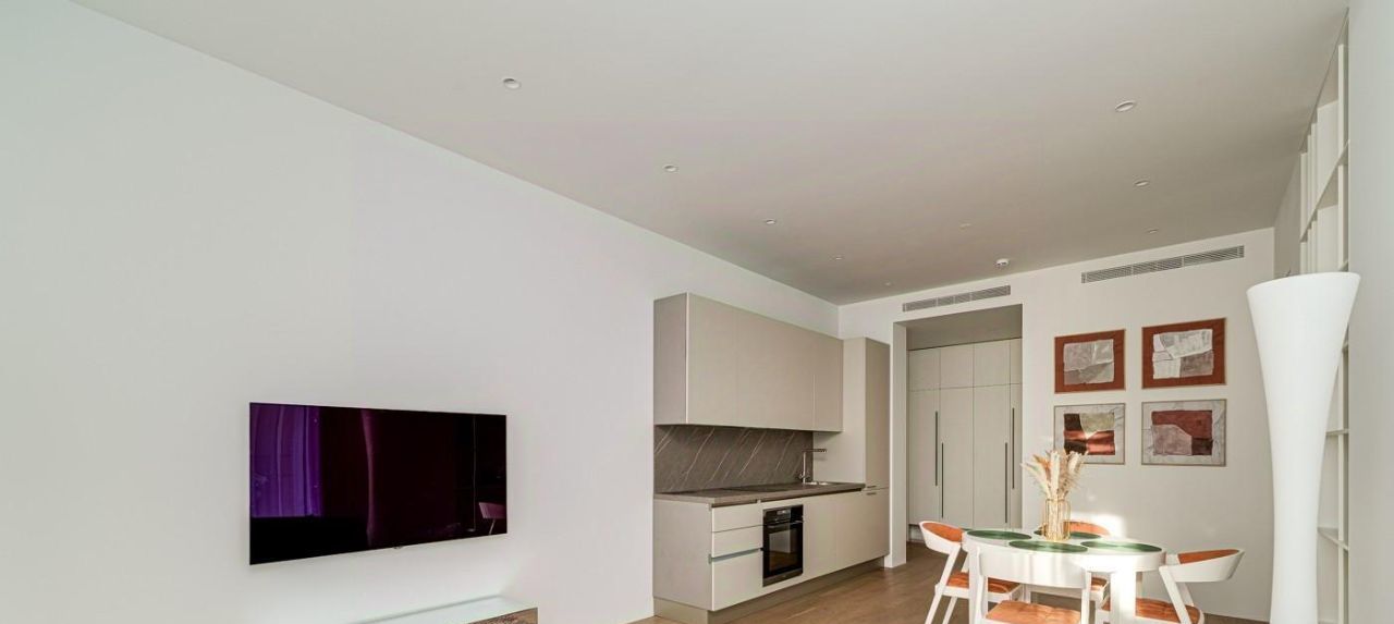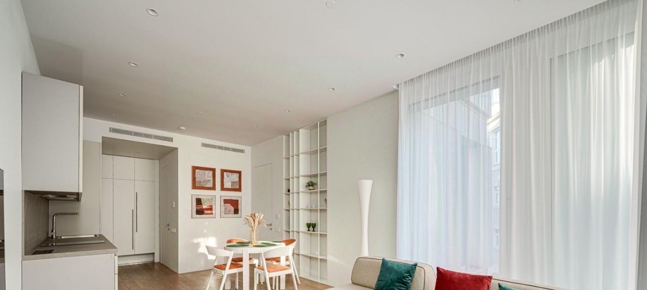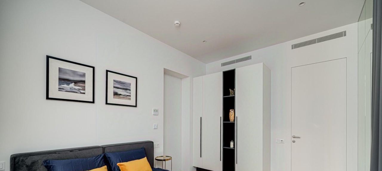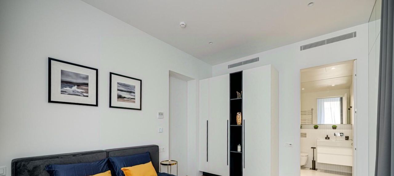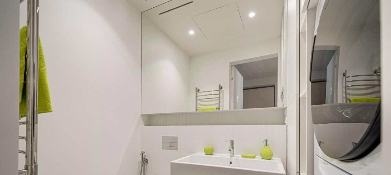 В апартаментах современная система приточно-вытяжной вентиляции и центральное кондиционирование воздуха. Система Умный дом. Панорамные окна Schuco с повышенным шумоподавлением AGC. Высокие потолки 3,3 м.