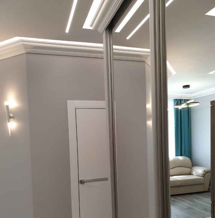 *Комфортная зона прихожей с большим зеркальным шкафом-купе.