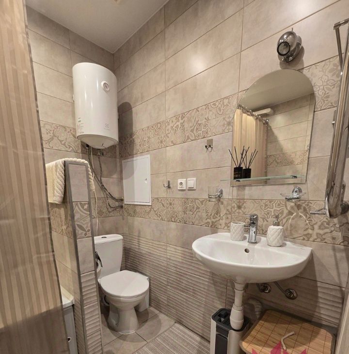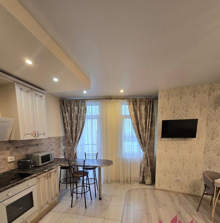 В квартире выполнен дизайнерский ремонт, который создает атмосферу уюта и комфорта. Квартира оборудована полностью мебелью, мелкой и крупной новой бытовой техникой, посудой, постельными принадлежностями.