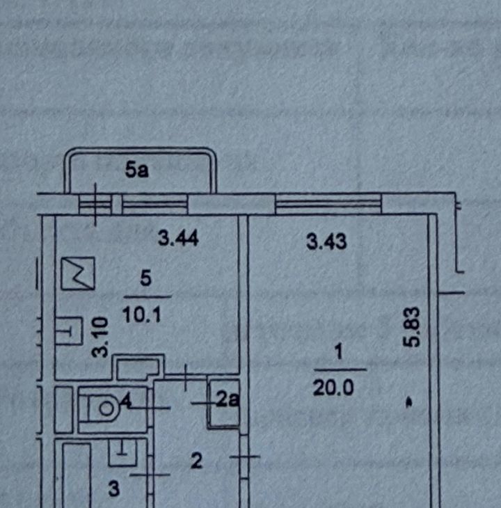 Общая площадь квартиры составляет 38,5 кв. м, жилая комната — 20 кв. м, кухня — 10,1 кв. м, коридор — 3,9 кв. м. Площадь ванной комнаты — 2,9 кв. м, туалета — 1,1 кв. м, балкона — 0,5 кв. м.