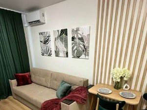 Внутри квартиры всё продумано до мелочей: современный дизайнерский ремонт, качественная мебель на кухне и в комнате, а также вся необходимая техника — кондиционер, холодильник, телевизор и стиральная машина. Санузел совмещённый, с ванной.