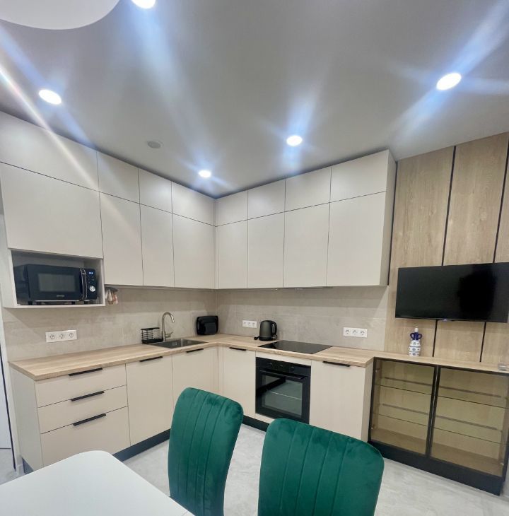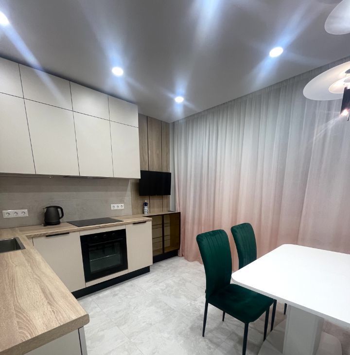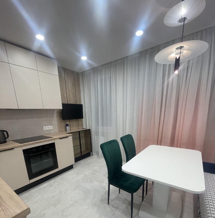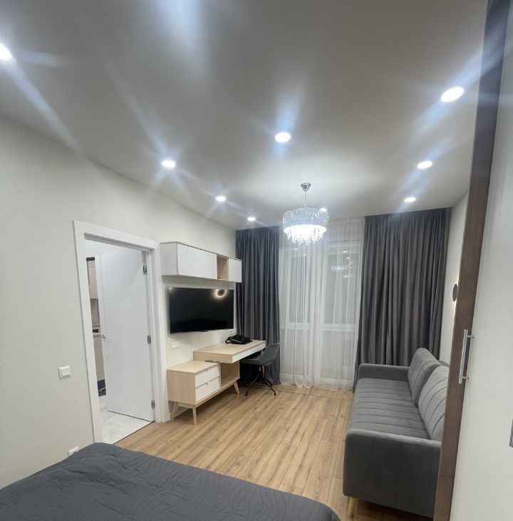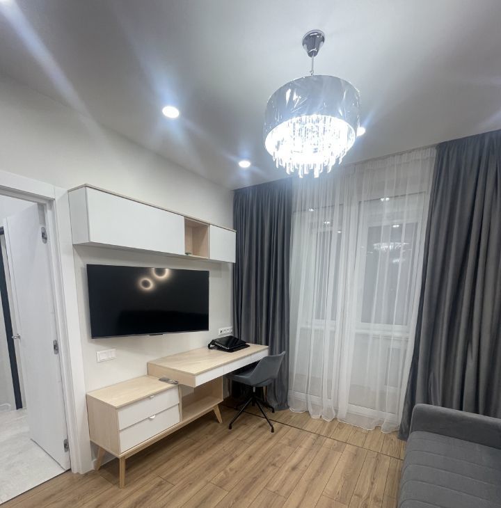 Есть вся необходимая мебель как в комнате, так и на кухне. Просторная ,встроенная кухня площадью 13 кв. м оборудована современной техникой: холодильник, посудомоечная машина, кондиционер, телевизор и стиральная машина. Ванная комната оснащена ванной, что идеально подходит для расслабляющих вечеров. Окна выходят во двор, поэтому всегда будет тихо и спокойно. Также имеется лоджия, где можно наслаждаться свежим воздухом.