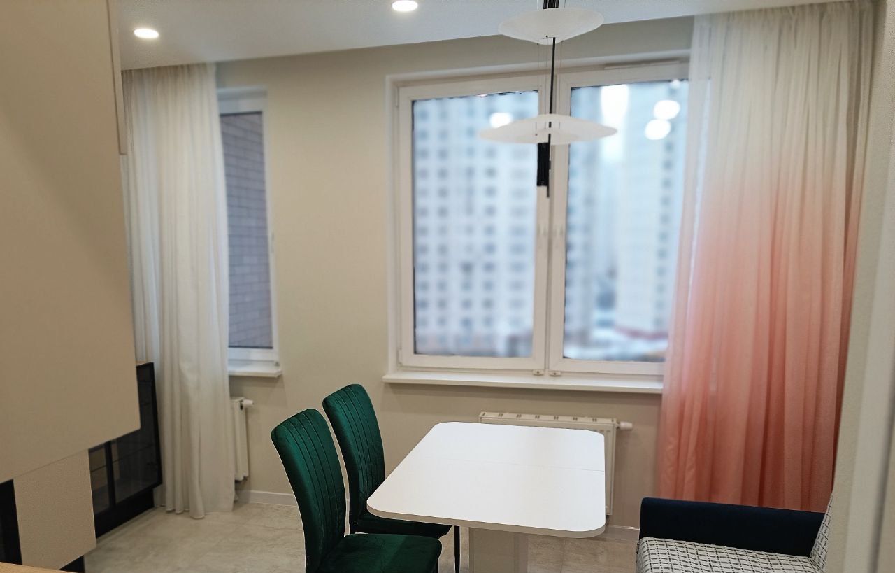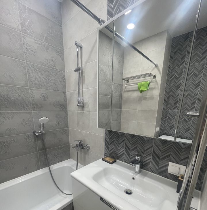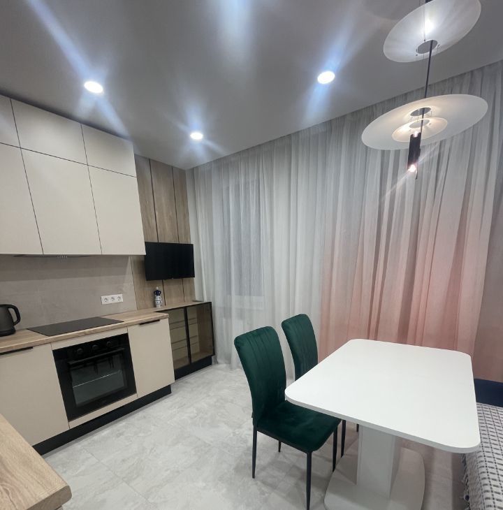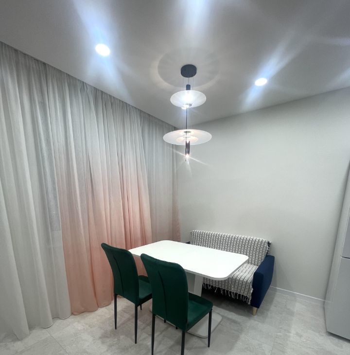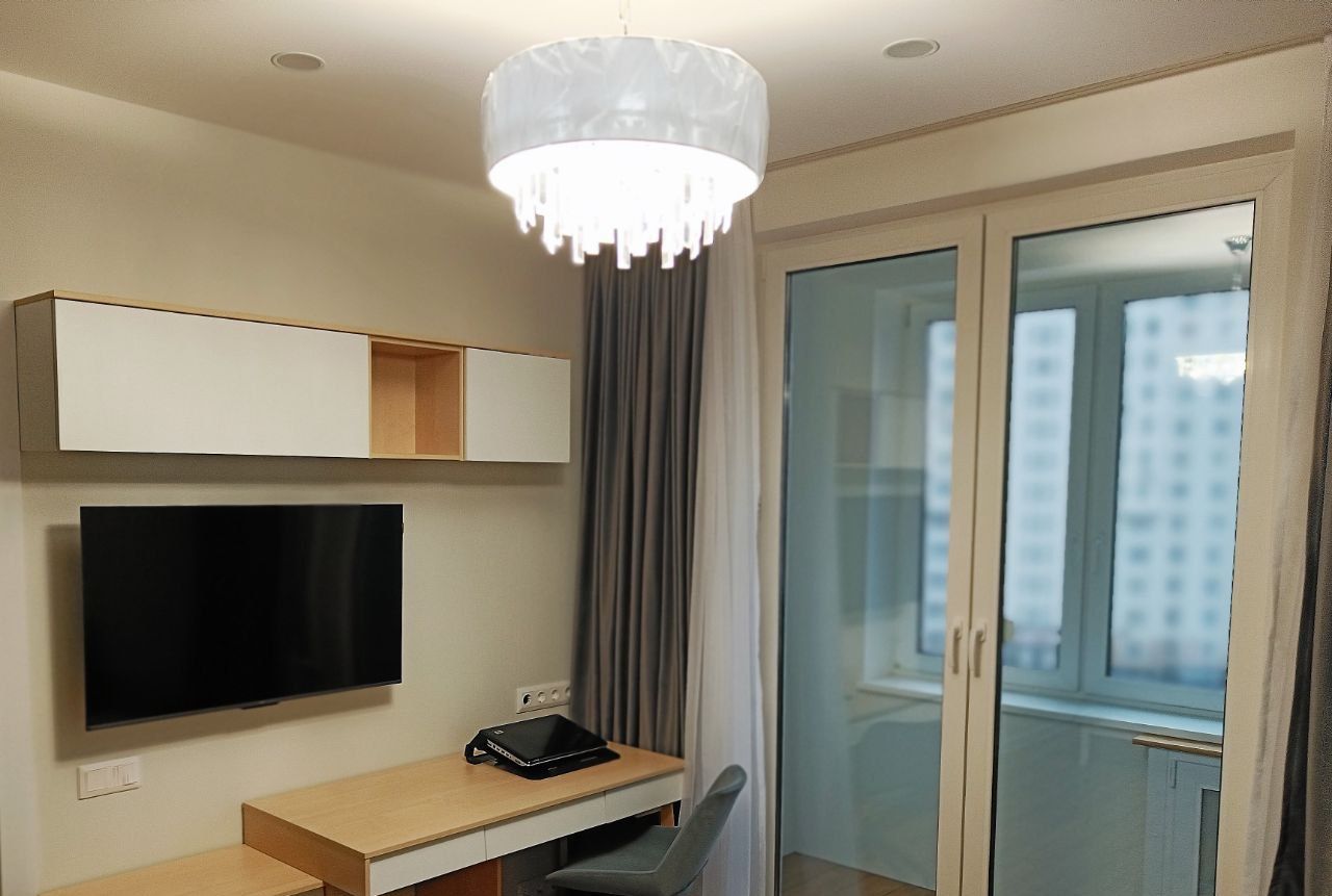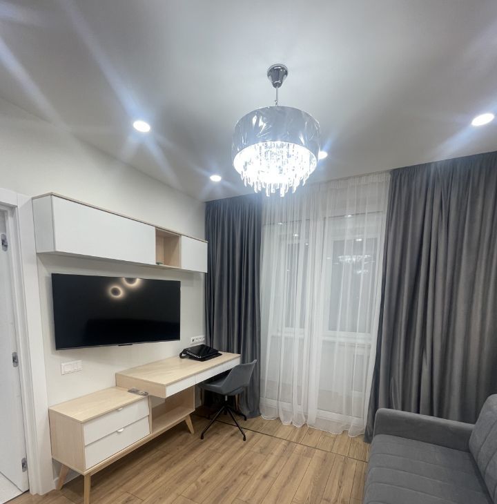 В квартире сделан качественный евроремонт, поэтому все выглядит современно и стильно. Здесь есть все необходимое для комфортного проживания: кондиционер, холодильник, посудомоечная машина, телевизор и стиральная машина. В комнате и на кухне установлена мебель, а в ванной комнате есть ванна. Также у квартиры есть лоджия, где можно наслаждаться свежим воздухом.