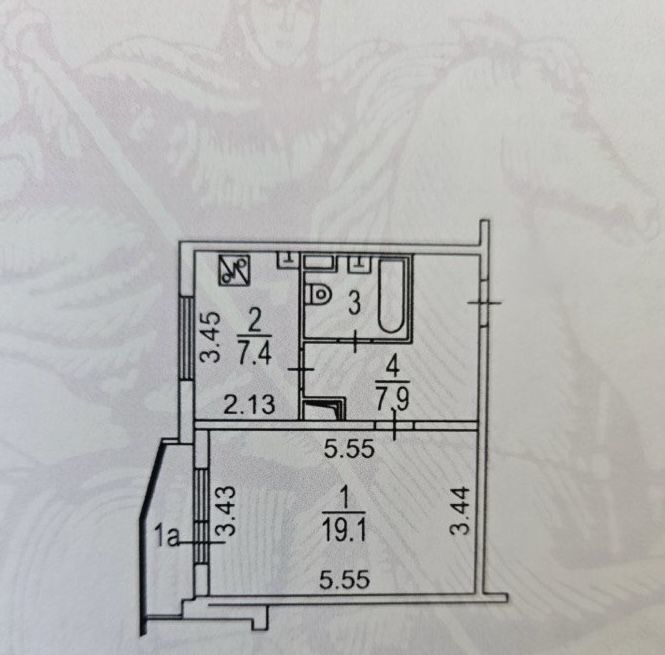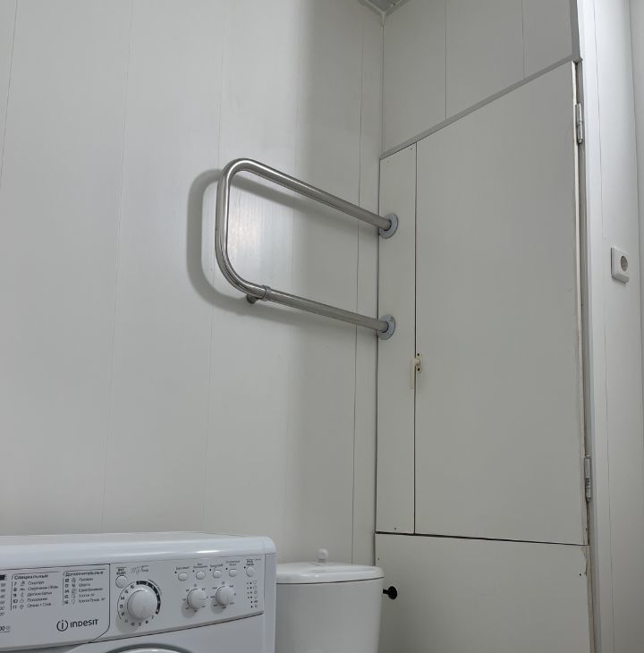 Площадь кухни составляет 7,4 м2, имеется холодильник и электроплита. Основная комната очень просторная - 19,1 м2 и имеет выход на застекленный балкон. Санузел совмещенный - 3 м2, оборудован ванной, вся необходимая сантехника, включая стиральную машину, присутствует. Перед продажей была произведена замена счетчиков ГВС и ХВС. Все краны в стояках и в том числе на полотенцесушителе были заменены на новые. Коридор имеет г-образную форму площадью 7,9 м2. Окна квартиры выходят во внутренний двор, во второй половине дня обилие солнца. Квартира без перепланировок, готова к проживанию.