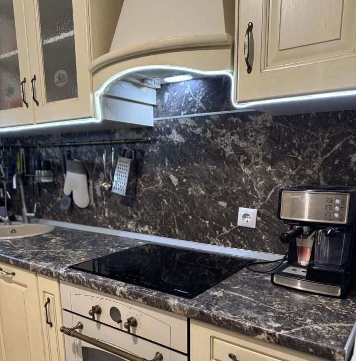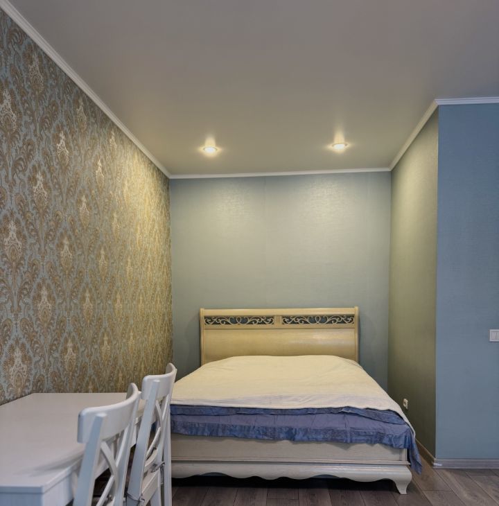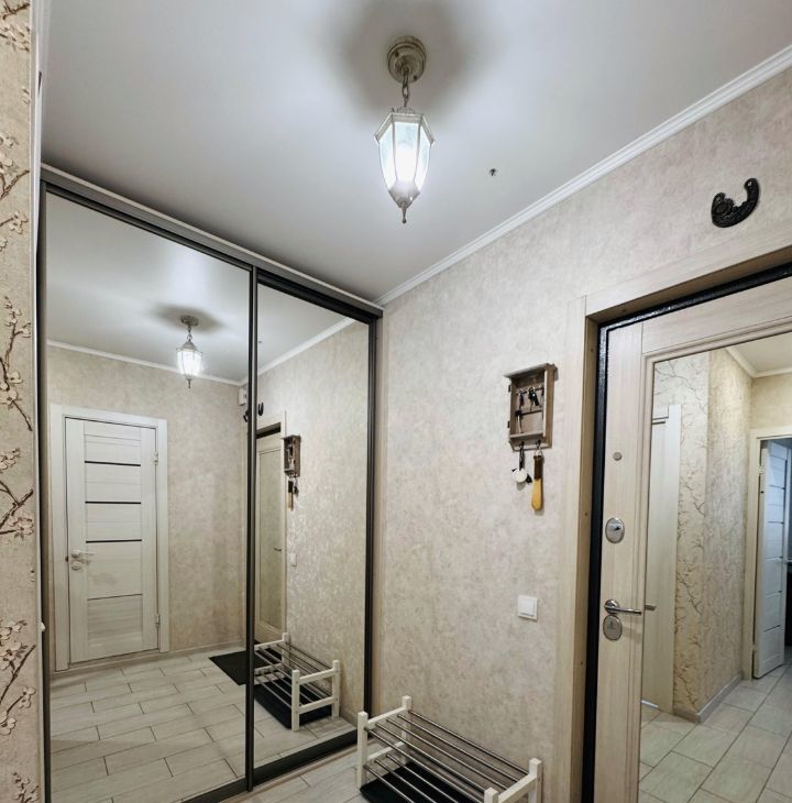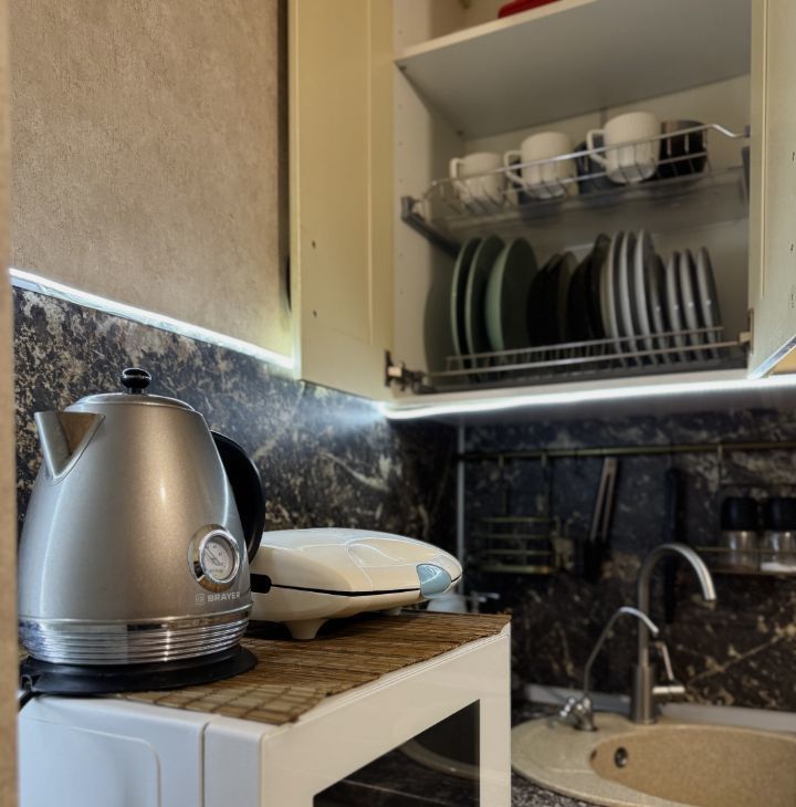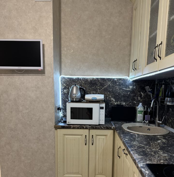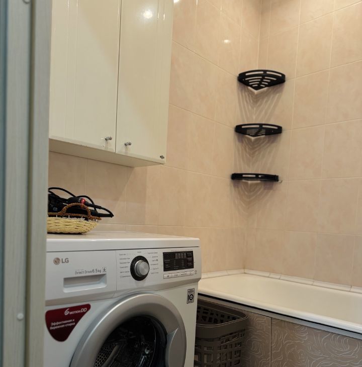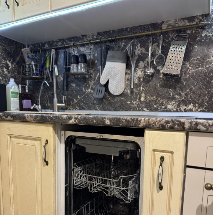 Квартира полностью оснащена мебелью и техникой. Всё необходимое для жизни есть - двуспальная кровать с ортопедическим матрасом, диван с раскладным механизмом, шкаф купе, два телевизора, кондиционер с таймером и функцией обогрева, стиральная и посудомоечная машина, встроенный питьевой фильтр, свч печь, духовой шкаф, холодильник, чайник, кофемашина, гриль, утюг, посуда.