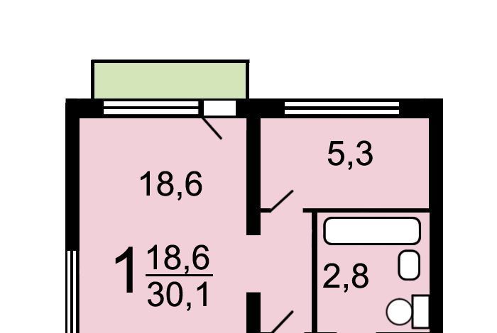 1-к кв. Москва Старокоптевский пер., 2 (30.1 м²)