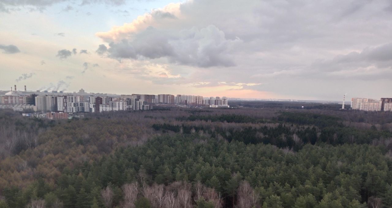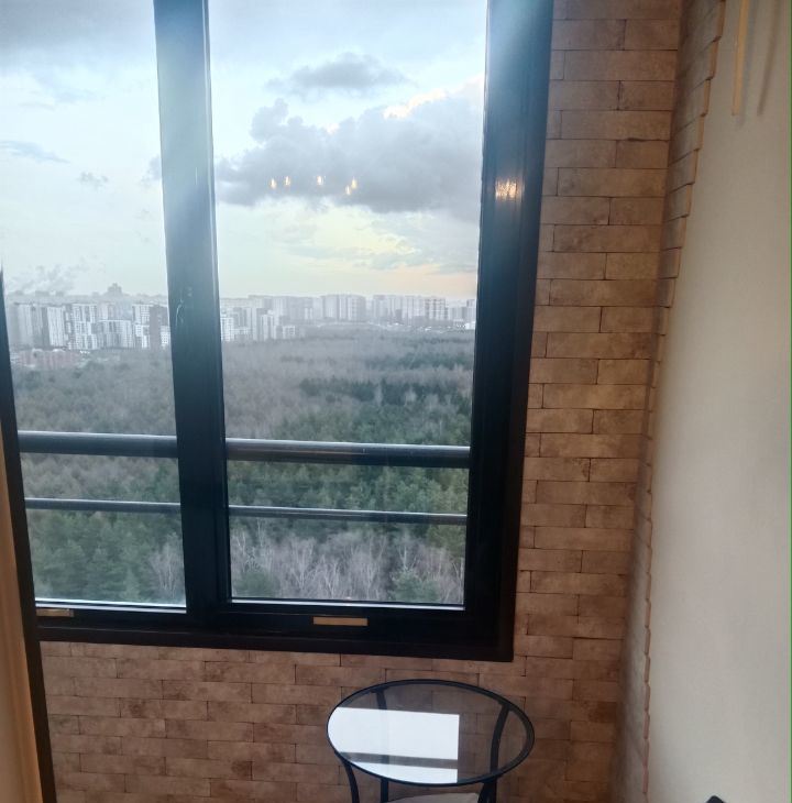 Окна выходят на тихий лес. Высокий видовой этаж.