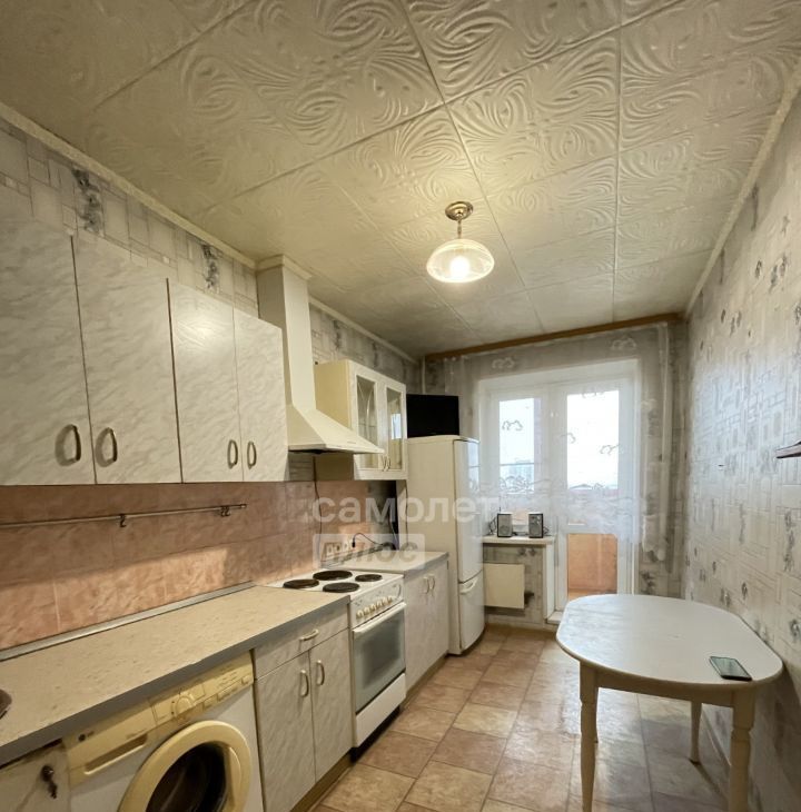 Кухонный гарнитур с рабочей бытовой техникой; стиральная машинка; стеллаж; шкаф.