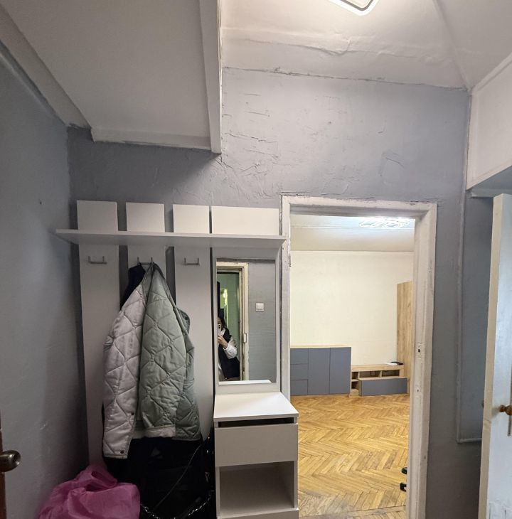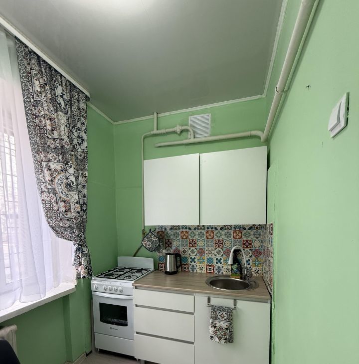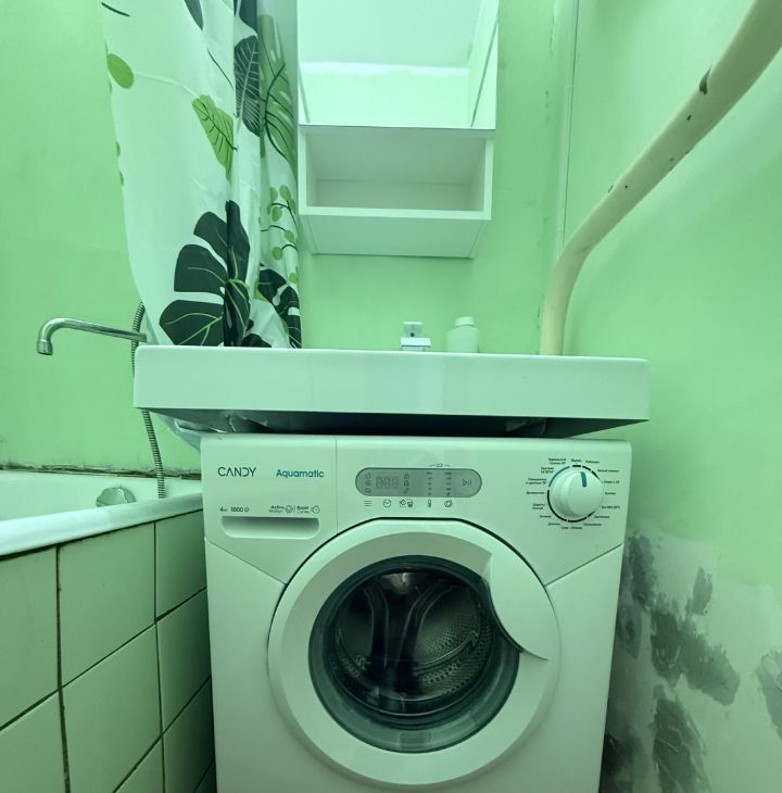В квартире сделан косметический ремонт, на полу паркет. Небольшая уютная кухня оборудована газовой плитой и новым холодильником . В комнате диван, шкаф и другая необходимая мебель. В ванной комнате установлена стиральная машина, санузел раздельный.