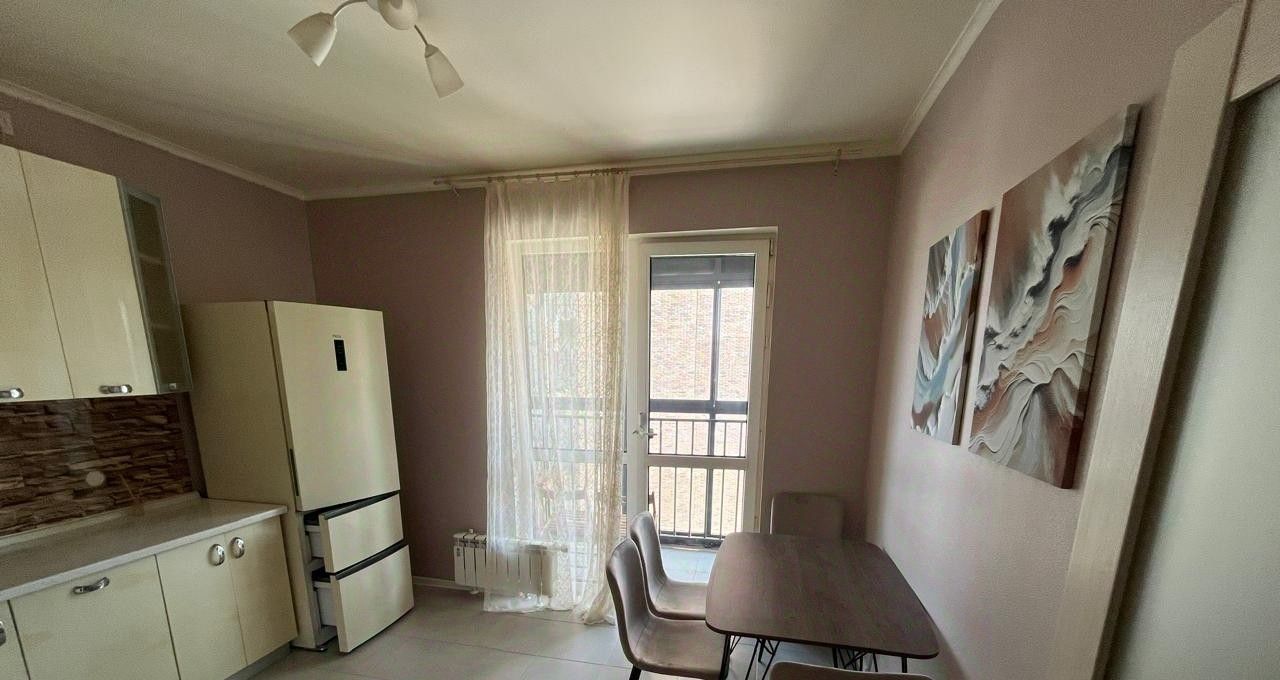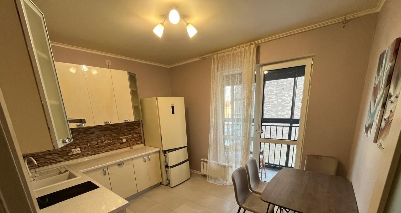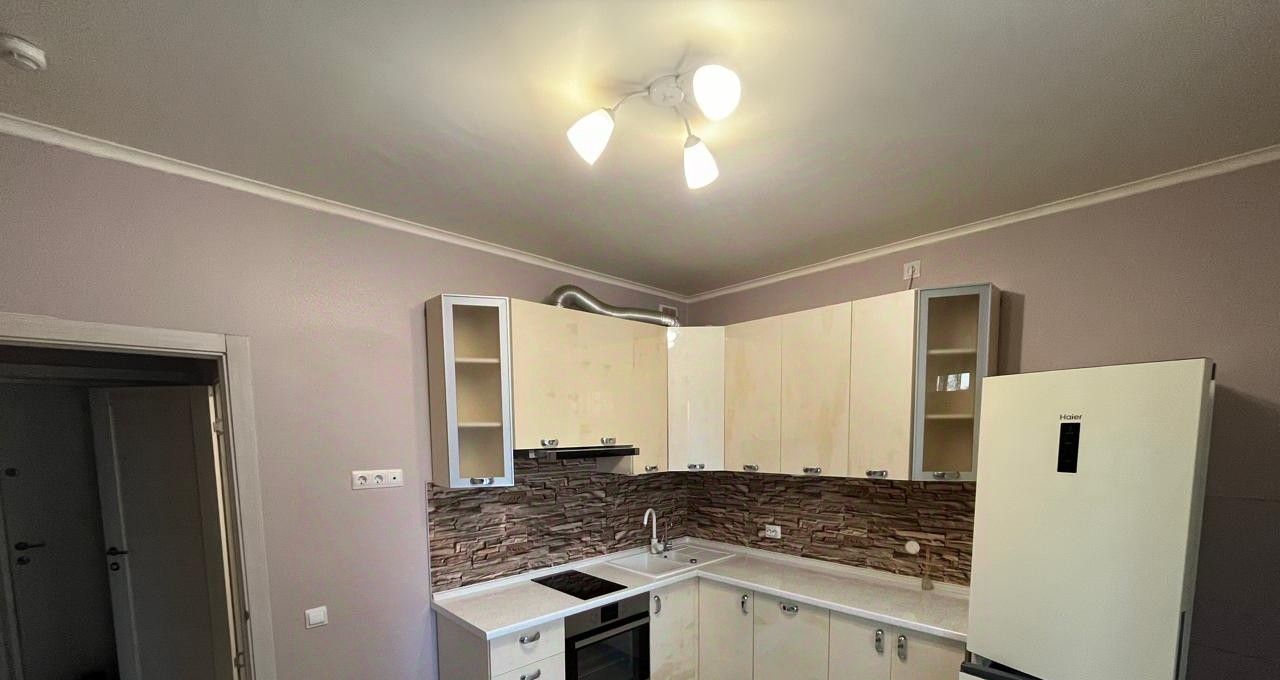 Кухня укомплектована всей необходимой техникой (холодильник, духовой шкаф, варочная панель, вытяжка).