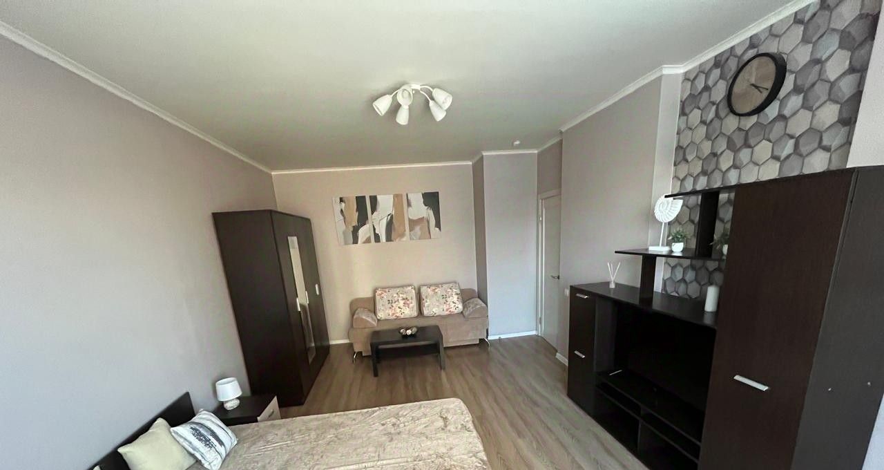 Просторная квартира. Полностью укомплектована и готова к проживанию. В квартире двухспальная кровать (160х200 см) с ортопедическим матрацем (Аскона) и диван (спальное место 140х200 см).