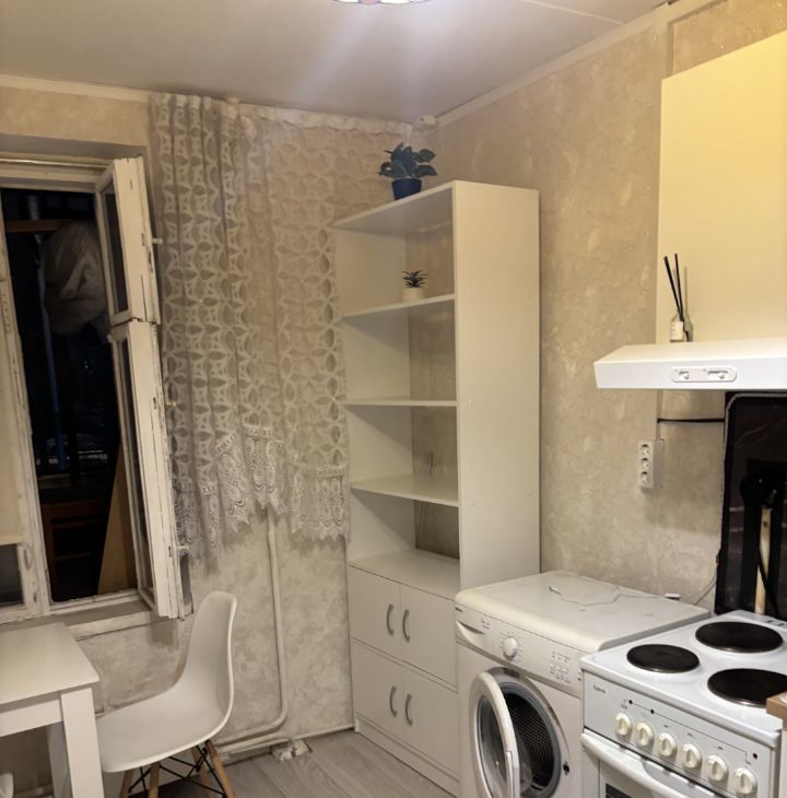 В квартире сделан косметический ремонт, установлена необходимая мебель, как на кухне, так и в комнате. Из техники есть холодильник и стиральная машина — все, что нужно для комфортного проживания. В совмещенном санузле установлена ванна.