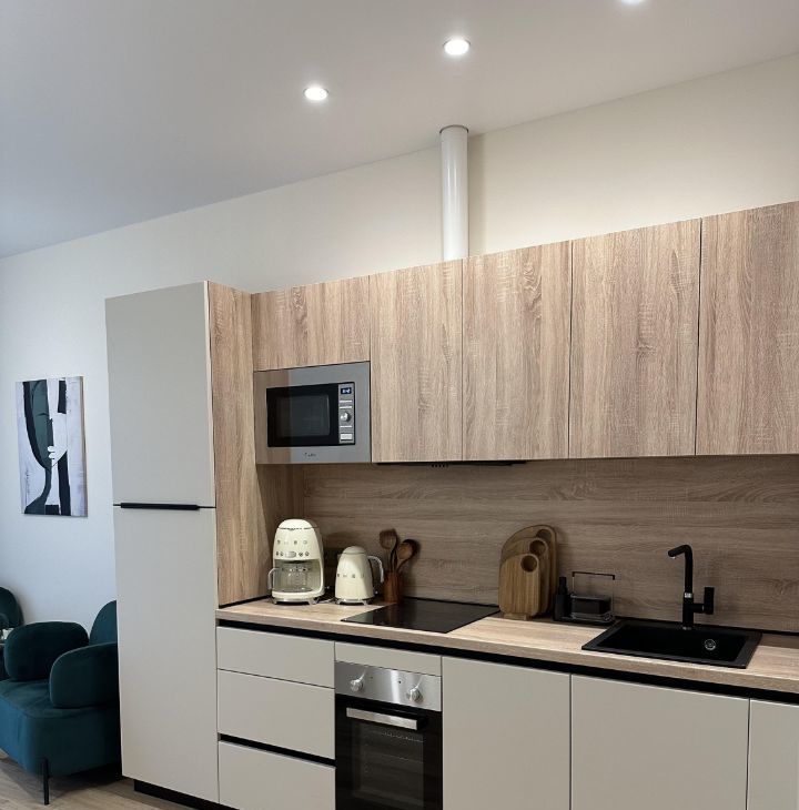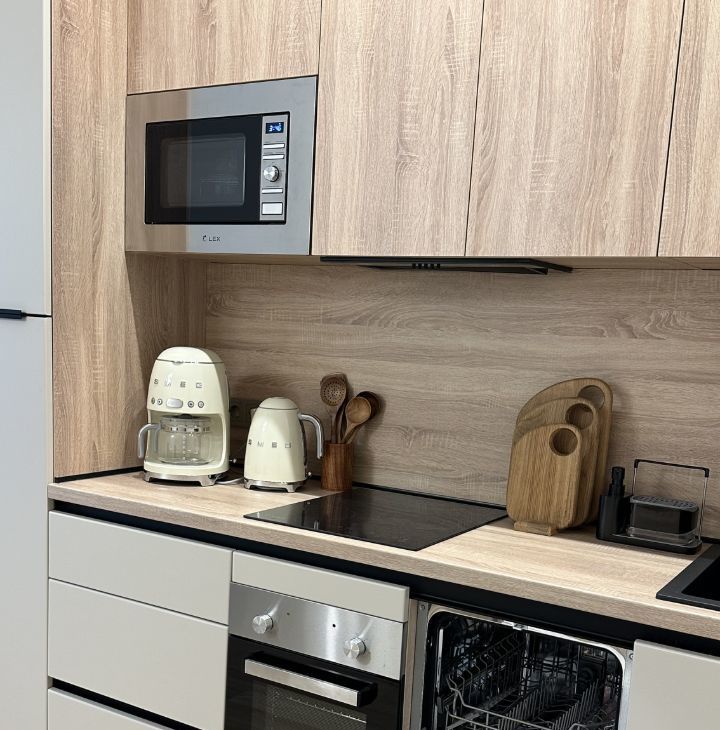 В квартире есть всё необходимое для проживания, включая стир. машину с сушкой, посуду и столовые приборы.