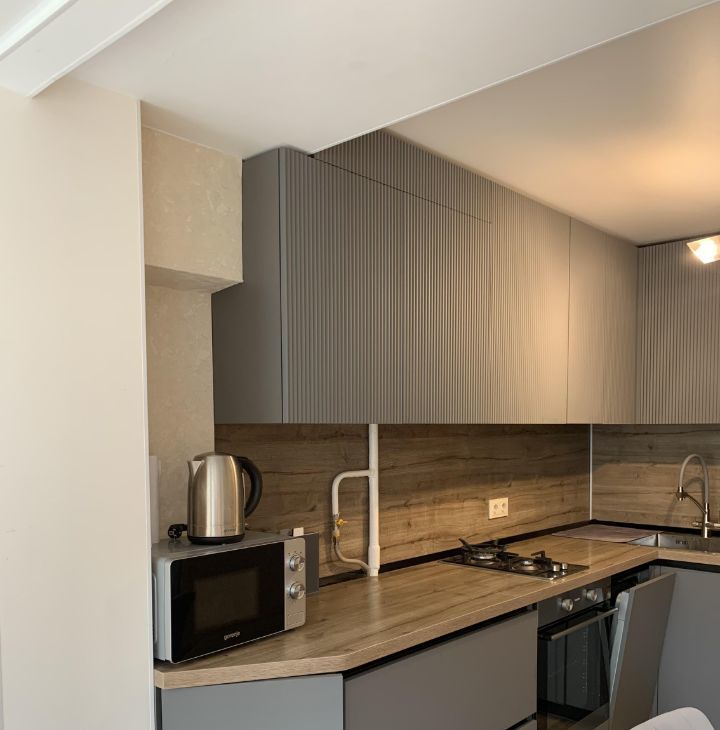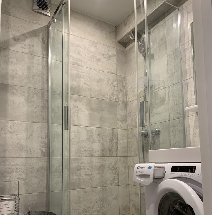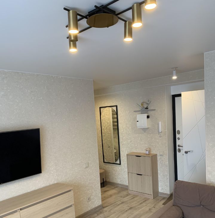 Квартира с дизайнерским ремонтом, что придаёт ей стильный и современный вид. В комнате и на кухне есть вся необходимая мебель. Из техники: кондиционер, холодильник, посудомоечная машина, телевизор и стиральная машина. Санузел совмещённый, оборудован душевой кабиной. Высота потолков — 2,64 метра, что создаёт дополнительное ощущение пространства.