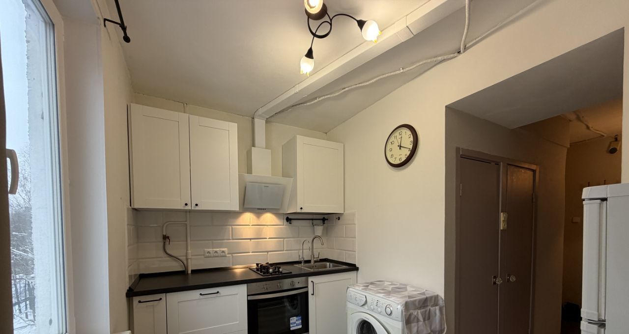 - кухня 6,7 кв.м: кухонный гарнитур (Икеа), варочная панель, духовка, ПММ, вытяжка, холодильник, стиральная машина, стол, табуреты;