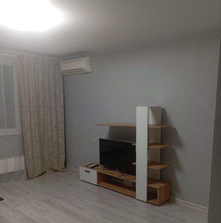 Квартира полностью готова для комфортного проживания. Внутри выполнен современный евроремонт, есть вся необходимая мебель как на кухне, так и в комнате. Для вашего удобства установлена вся необходимая техника: кондиционер, холодильник, телевизор и стиральная машина.