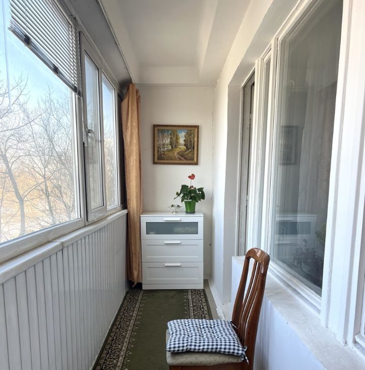 Окна выходят на парк — тихо, зелено, всегда свежий воздух. Лоджия светлая и удобная — дополнительное пространство для хранения или отдыха.