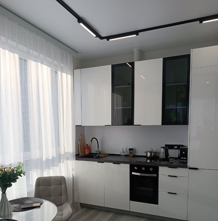 Стильная, светлая квартира в современном жилом комплексе комфорт-класса "Сиреневый парк". Полностью меблирована и укомплектована всей необходимой бытовой техникой: холодильник, варочная панель, духовой шкаф, вытяжка, посудомоечная машина, кофеварка, электрический чайник, кондиционер, стиральная машина.