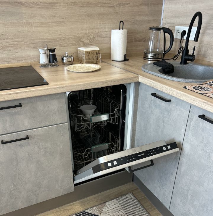 Квартира выполнена в стиле евроремонт, что делает её особенно привлекательной для любителей современного интерьера. В комнате и на кухне есть вся необходимая мебель, а также бытовая техника — холодильник, посудомоечная и стиральная машины, телевизор. Санузел совмещённый и оборудован ванной, что обеспечит вам комфортное проживание.
