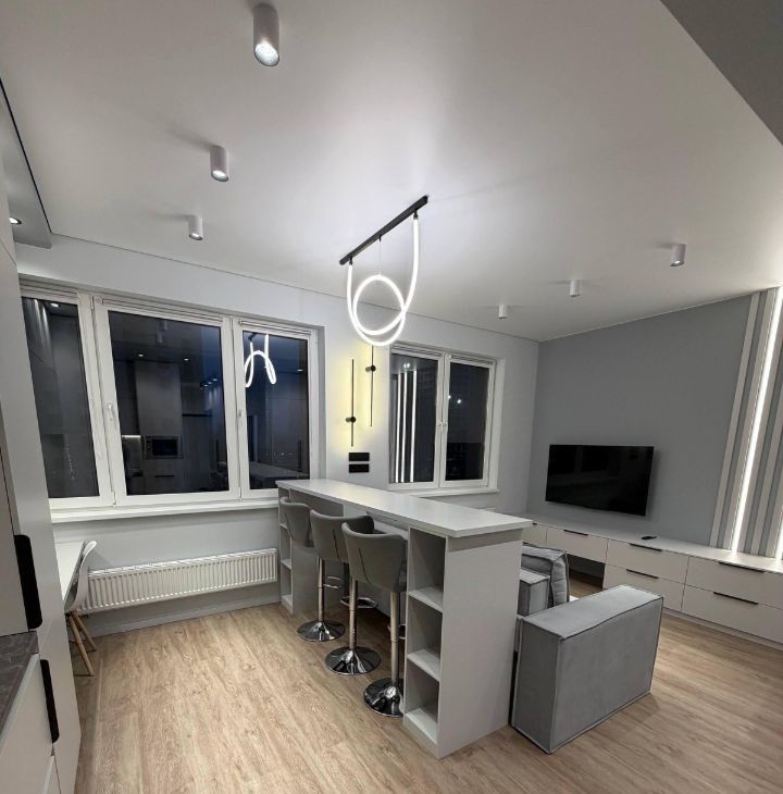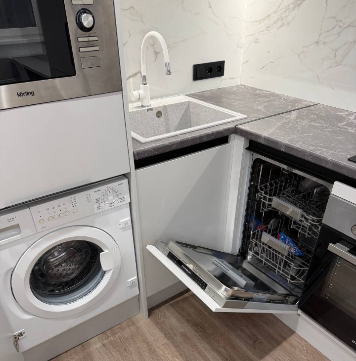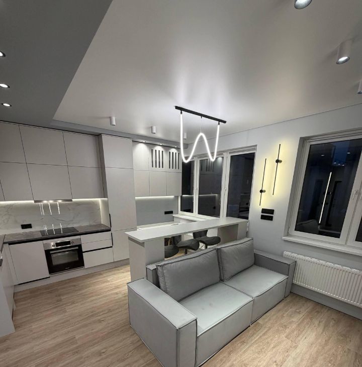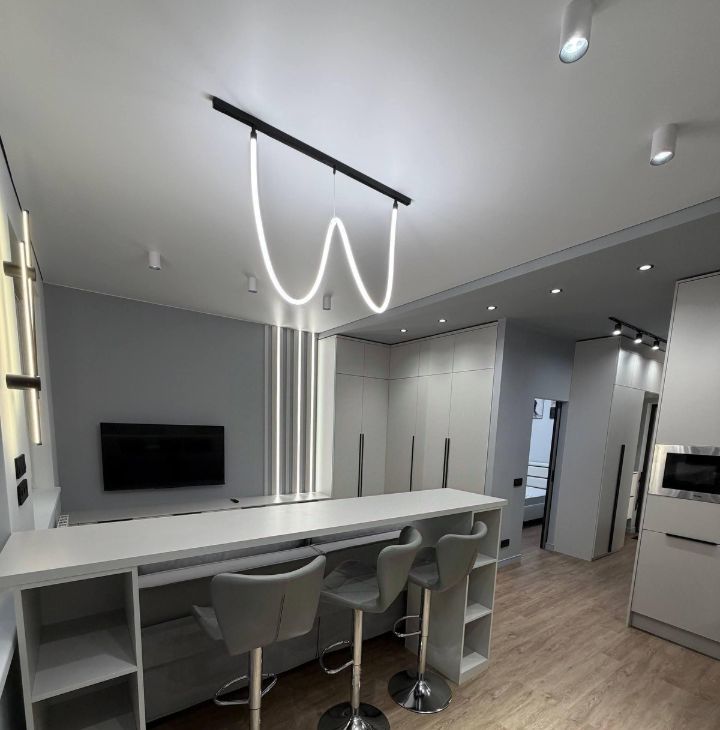 Квартира свежая, сделан дизайнерский ремонт. Квартира уютная, светлая и современная. Встроенная мебель и техника, посудомойка большая, стиральная машинка на 7 кг, духовка, плита индукция, кондиционер, бойлер, WiFi, 2 smart tv и все необходимое для комфортной жизни (посуда, приборы, чайник, сушилка для белья, утюг, гладилка, сковородка и кастрюля, веник и швабра, постельное белье). Квартира делалась для себя с дорогим и качественным ремонтом.