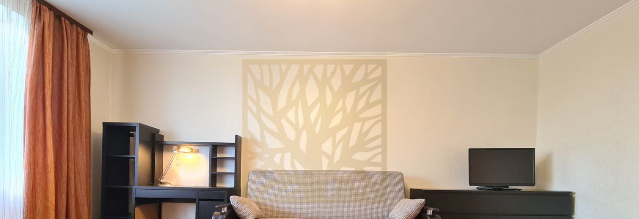 Уютная и светлая квартира, чистая и в хорошем состоянии. В квартире есть все необходимое: Холодильник, Варочная панель, Микроволновая печь, Фильтр для воды, Обеденный стол и 2 стула, стиральная машина, Раскладной диван, Кресло, 2 комода, Шкаф, Рабочий стол, телевизор. В коридоре вместительный шкаф для хранения. Лоджия застеклена и обшита пластиковыми панелями. В квартире комфортно и нет жары летом.