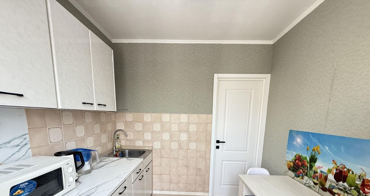 Квартира после свежего ремонта, никто не жил. Кухонный гарнитур, вся бытовая техника. В комнате кровать, стол. Собственник готов докупить шкаф, телевизор. Санузел в плитке совмещенный. Встроенный шкаф в прихожей. Окна стеклопакеты, во двор.