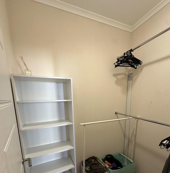 Отдельная гардеробная с рейлами и стеллажом.