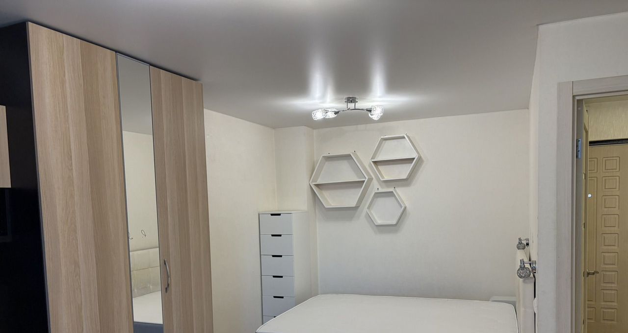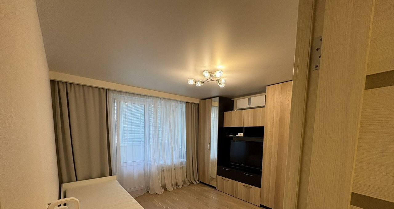 В комнате установлен вместительный шкаф и телевизор. Из мебели также имеются удобные шкафы для хранения вещей. Санузел совмещенный, оборудован современной сантехникой.
