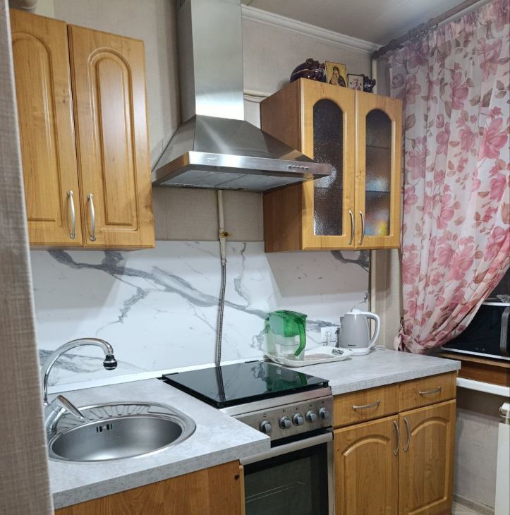 Сдается уютная однокомнатная квартира 33,3 м2 в тихом районе. Комната 17.5 м2 с балконом, кухня 6 м2, 2 этаж. Рядом с парком Кузьминки (вход парк в 3 минутах ходьбы). Удаленность от метро: м. Кузьминки 10-12 минут общественным транспортном. Метро Юго-Восточная 15 минут пешком. Во дворе школа, рядом детский сад, магазины, пункты выдачи, почта. Поликлиника в 10 минутах ходьбы. Кондиционер, стиральная машина, телевизор, утюг, гладильная доска, сушилка, микроволновка, кухонные принадлежности присутствуют. По согласованию возможна замена двухэтажной кровати на обычную двуспальную кровать.