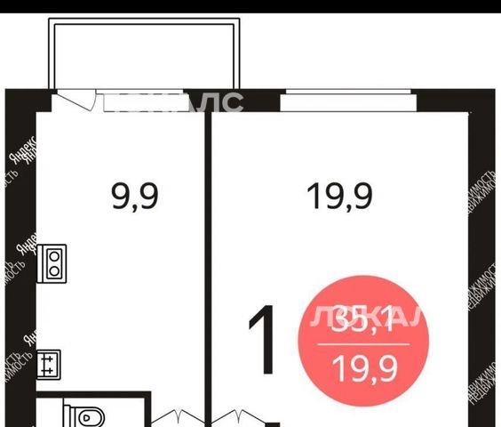 Продается однокомнатнaя квapтира на 3 этаже общей площадью 35,2 м²