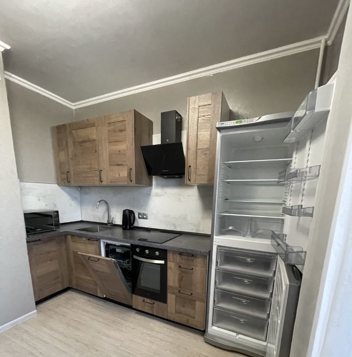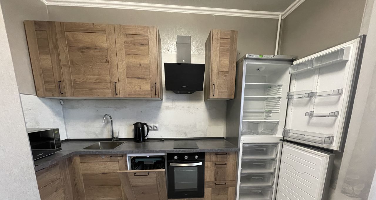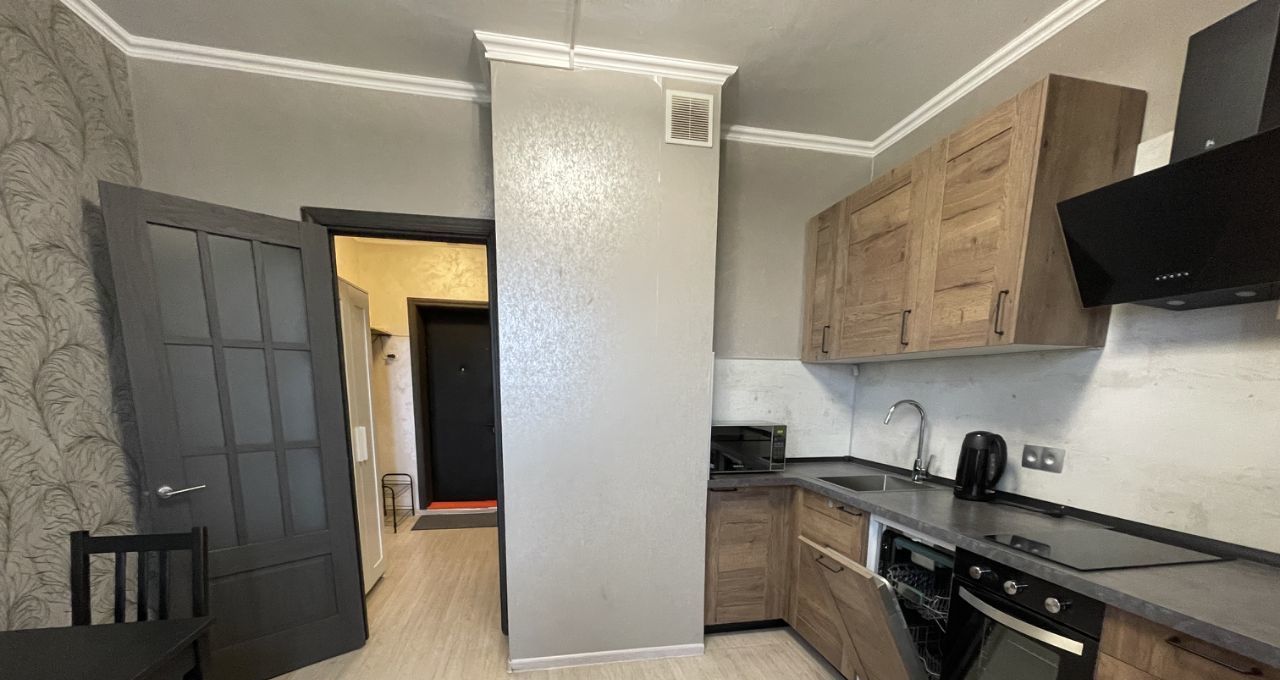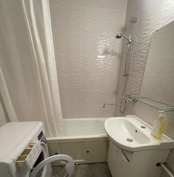 Квартира полностью готова для комфортного проживания. В комнате и на кухне есть вся необходимая мебель. Кухня площадью 8.6 кв.м оборудована современной техникой: холодильник, посудомоечная машина, стиральная машина и кондиционер. Санузел раздельный, в ванной установлена ванна. Окна выходят во двор, что обеспечивает тишину и уют. В квартире есть лоджия.