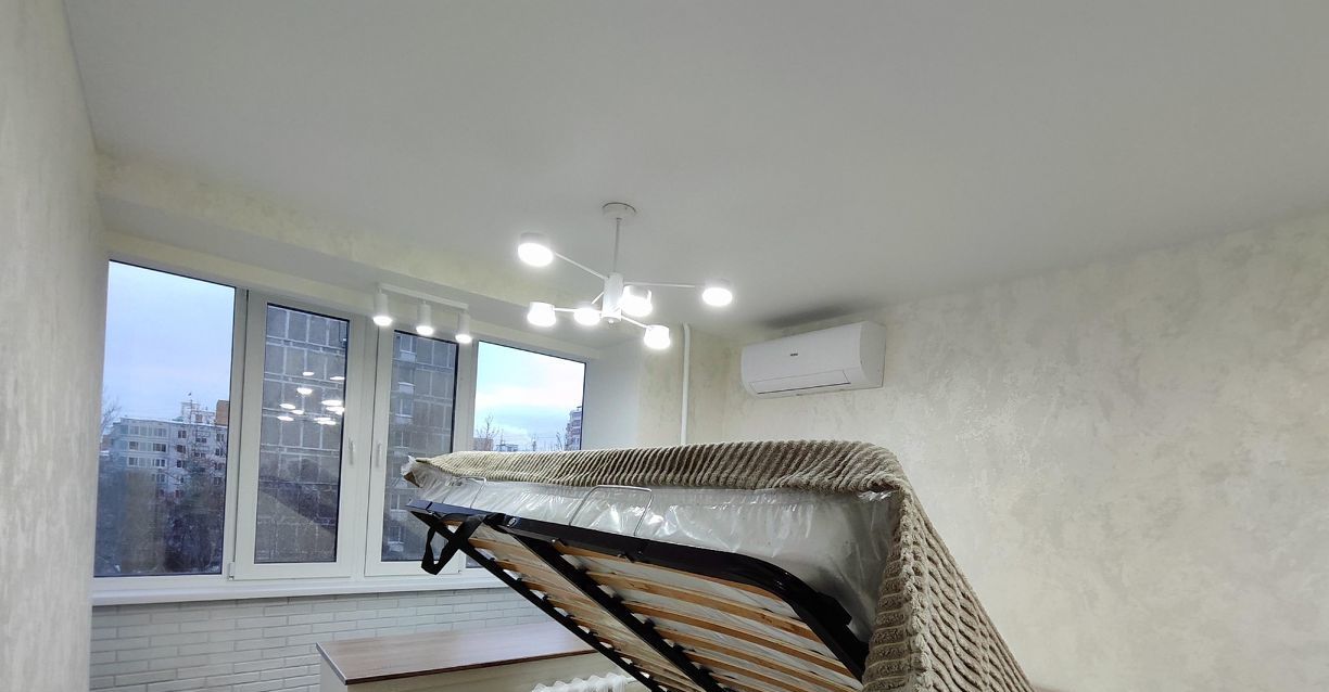 В комнате установлен кондиционер, имеется широкая двуспальная кровать с подъемным механизмом и зоной хранения и диван с возможностью раскладывания.