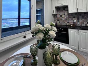 Просторная кухня площадью 8.1 кв. м. Квартира оборудована современной и новой техникой и мебелью, вся мебель и техника остается новым хозяевам. Встроенная кухня, холодильник, стол со стульями. В ванной комнате качественный новый ремонт, новая стиральная машина. В прихожей большой встроенный шкаф купе. В комнате двухспальная кровать и раскладной диван. Застекленная лоджия с панорамным видом.